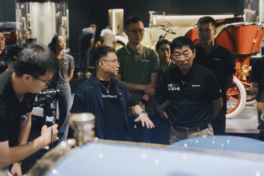 结束旗舰店访问后,魏建军董事长一行来到成都三和老爷车博物馆。在黄宗敏馆长的陪同讲解下,细致品鉴了馆内众多经典藏车——从代表汽车工业开端的奔驰一号,被誉为“最美汽车”之一的派卡德·超级八,到中国汽车工业里程碑的红旗CA72,以及历代法拉利经典车型。魏建军董事长认真聆听每件藏品背后的历史与修复故事,还就汽车设计演变、行业发展及老爷车修复技艺等话题,与黄宗敏馆长进行了深入探讨,并对三和集团在汽车文化传承、经典车修复及博物馆运营方面的工作给予高度评价。